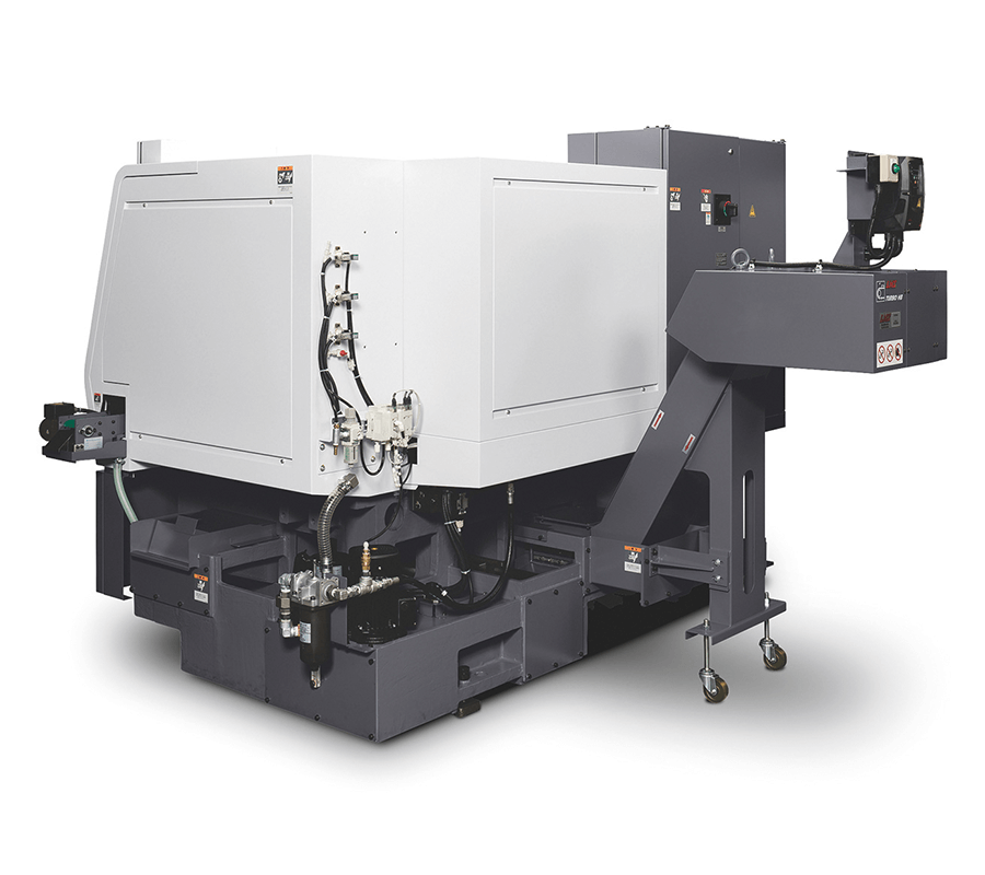雖(sui)然是1個主(zhu)軸1台轉塔(ta)的簡單構(gou)造,但可通(tong)過搭配動(dong)力卡盤以(yi)及選配後(hou)排式排屑(xie)機,與桁架(jia)式機械手(shou)組合,便可(ke)實現卡盤(pan)機的自動(dong)化生産線(xian)。
