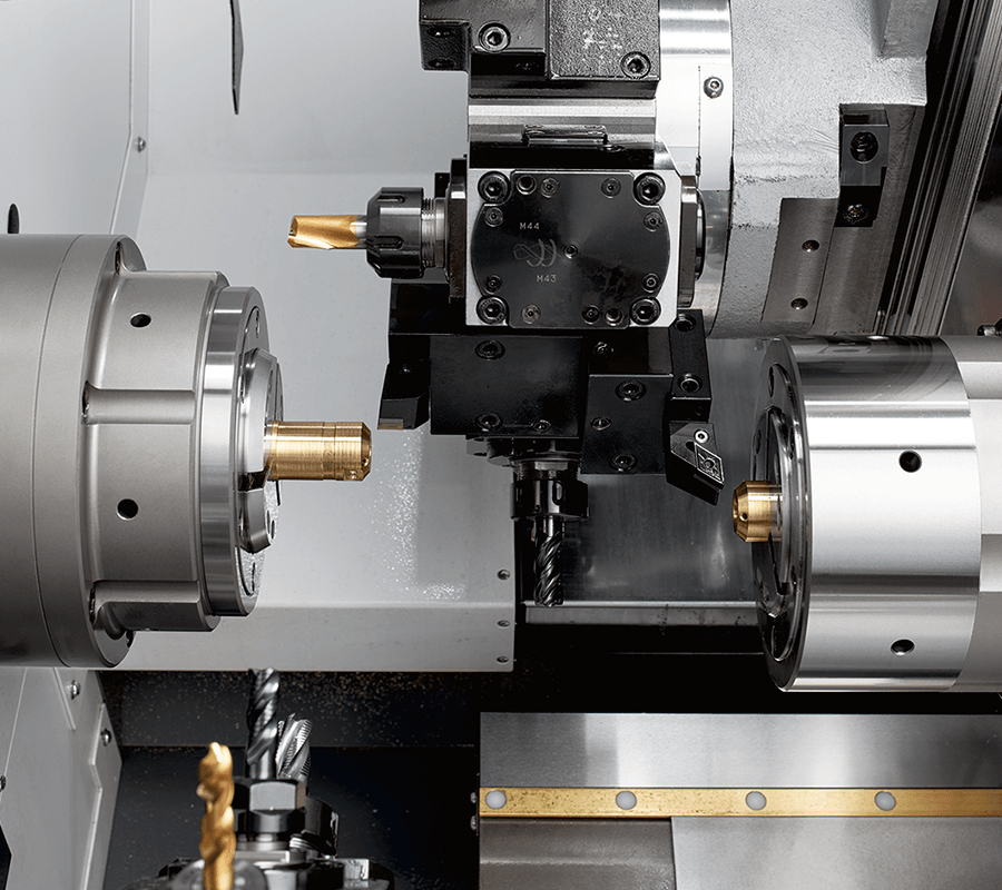 搭(da)載了Y軸的(de)2個12工位刀(dao)塔與雙主(zhu)軸的機械(xie)構成,在實(shi)現了重疊(die)加工、左右(you)同時加工(gong)等高效率(lü)加工方式(shi)的🔞作用下(xia),大大的☠️縮(suo)短💯了加工(gong)周期。