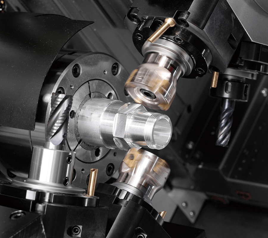 利用(yong)搭載(zai)Y軸功(gong)能的(de)上下(xia)刀塔(ta)和左(zuo)右軸(zhou)的同(tong)步加(jia)工,可(ke)短時(shi)間完(wan)成工(gong)件的(de)内外(wai)加工(gong)